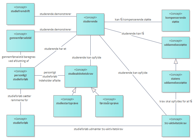 Studiefremdriften måles for den enkelte studerende og de enkelte uddannelsesinstitutioner kan have forskellige studieaktivitetskrav. <br/><br/>Status for den studerendes studiefremdrift angives ved opnåede ECTS-point, set i forhold til hvad der var forventet på det givne tidspunkt. <br/><br/>Den valgte uddannelse kombineret med institutionens studieaktivitetskrav afgør hvor mange ECTS-point der forventes at være opnået på et givet tidspunkt i uddannelsen. <br/><br/>I beskrivelsen af den studerendes individuelle studieforløb indgår relevante oplysninger som kan påvirke studiefremdriften, såsom udlandsstudieophold, barselsperiode m.m., Se også diagram 3.4. Ved kontrol af studieaktivitetskrav tages der udgangspunkt i den studerendes personlige studieforløb. Ved kontrol af SU-aktivitetskrav tages der derimod udgangspunkt i de fælles normer for uddannelsen, det vil sige studieforløbet. <br/>
